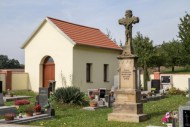 Pomník padlých v 1. světové válce, boží muka, dřevěná zvonička, centrální kříž na hřbitově